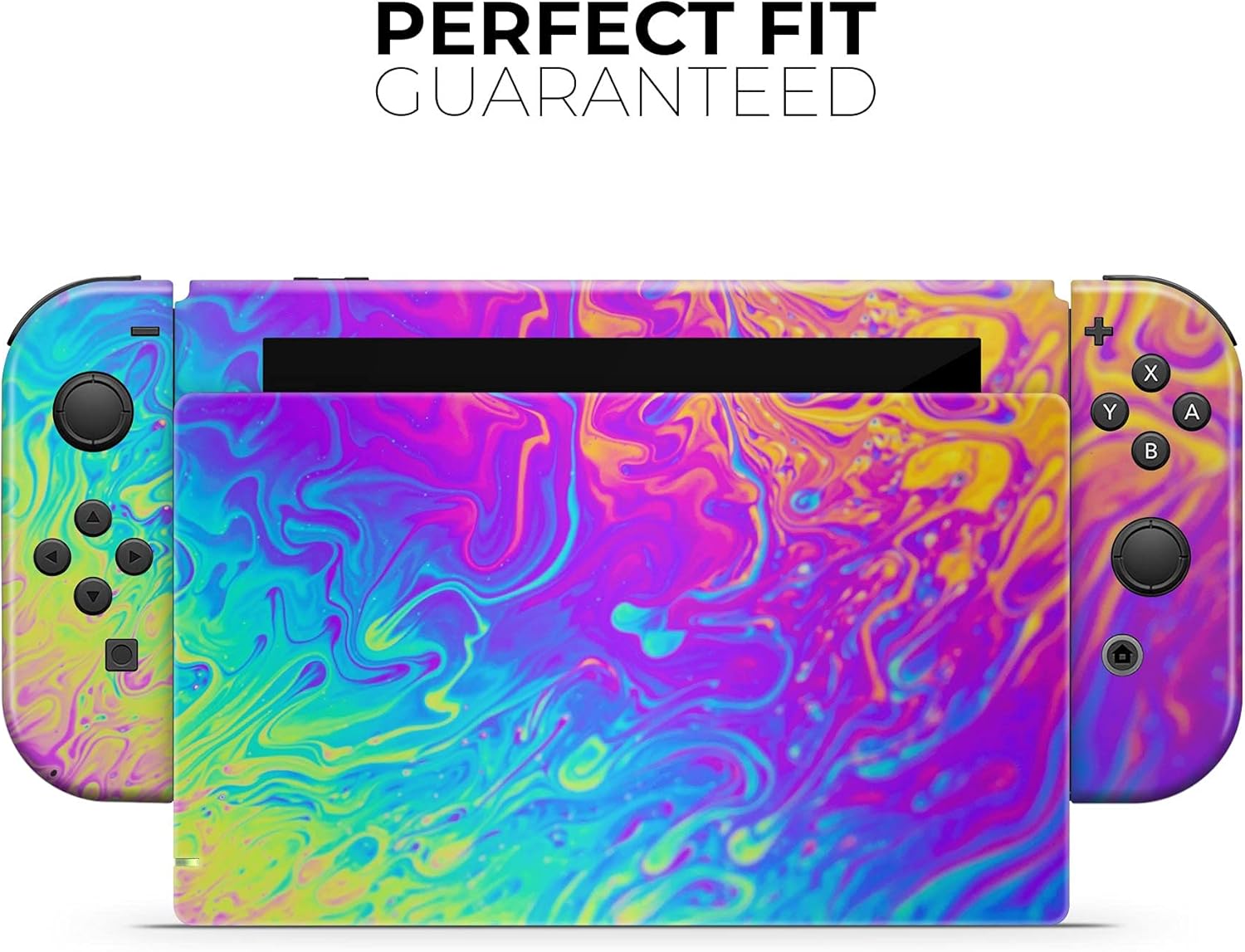 The gamer's choice for reliable and safe protection on the devices that you love the most. Add your own unique-style to your gaming device with our full-body skin kits! With Design Skinz, you can change the look of your favorite device in seconds, literally. Made from a premium vinyl, these skins can take a beating!✅ Design Skinz compatible with the Nintendo Switch OLED Console + Dock + Joy‑Con Bundle: This skin fits snugly like a glove to the curves of your device without adding bulk. Silky Soft-touch Feeling: The matte finish of the skin feels great in your hand, better than the naked device, you'll forget it's even using a skin!✅ Protection without the BULK: Each skin provides your gaming device with edge-to-edge coverage for improved scratch defense. Air-Release adhesive backing to prevent air-bubbles during application.✅ How It's Made: Each skin is created carefully with a comprehensive three-layer production process using materials that ensures the highest quality finished product. It begins with a patented Air-Release Adhesive backing that prevents air-bubbles from occurring during the installation process. Once the graphic is printed by our state-of-the-art equipment, we apply a crystal-clear lamination layer in our soft-matte or high-gloss finishes that protects your skin from daily abrasion & abuse.This is not a hard case, but a premium vinyl decal, skin wrap that covers the console with cut-outs to allow for full use of the console or controller.