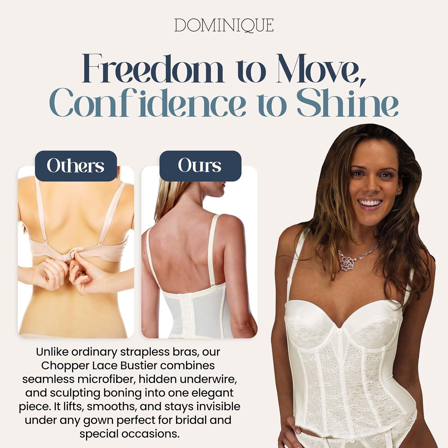 Tailored with luxurious chopper bar lace and nylon, lightly lined cups with fiberfill create an alluring feminine look. This “Tuxedo Inspired” backless low plunge strapless also features front boning for perfect contour and fit while providing that extra tummy control. Two inch elastic waistband prevents ride up.
