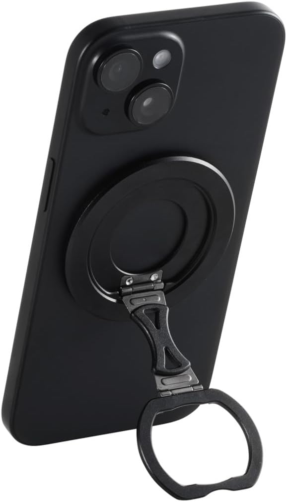 Specifications: ■ Contents: Smartphone ring ■ Size: W 2.3 x D 1.7 x H 2.3 inches (58 x 4.2 x 58 mm) (including protruding parts) ■ Material: Aluminum alloy, polycarbonate, magnet ■ Load Capacity: Approx. 28.7 oz (800 g) *Please do not use on devices with over 250 g. ■Color: Black Description: Overview ■ MagSafe smartphone ring that can be attached to the back of the iPhone with magnets. ■The ring part can be rotated 360 degrees, allowing you to freely adjust the angle and reposition your smartphone. Only the inner part of the ring that does not touch the device will rotate, which will not damage the body. ■The ring can also be used as a stand for comfortable viewing of videos, etc. ■ Thin type with a thickness of about 0.2 inches (4 mm), so it can be used compactly even when the product is installed on the smartphone itself. ■ The ring can be detached by magnetic, so you can easily remove the ring to quickly respond to wireless charging and electronic payments. ■ The ring is designed to lay flat when stored, so it will not get wobbly even if you put the back of your smartphone down. - Uses a powerful magnet that can withstand loads up to approximately 28.2 oz (800 g). ■ Please do not use on devices that are larger than 8.8 oz (250 g). ■ Please do not hook the ring part or lift it alone. ■ Please handle with care as it is attached with magnets, as the device may fall off. ■*Please be sure to check the compatible model information before purchasing. ■ This product meets more than one of our own environmental certification standards and displays the "THINK ECOLOGY" mark. ■ We work hard to reduce waste and make this product paperless with the instruction manual included with the product. Product inquiries Elecom General Information Center TEL. 0570-084-465 FAX. 0570-050-012 Reception Time / 10:00 - 19:00 24/7 Chat support is also available. Please check 8056.jp for details.