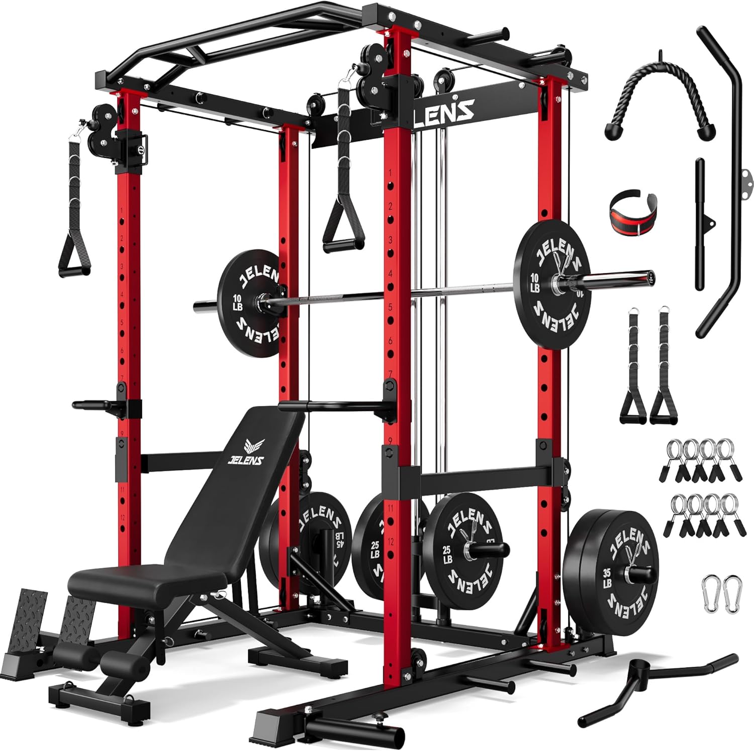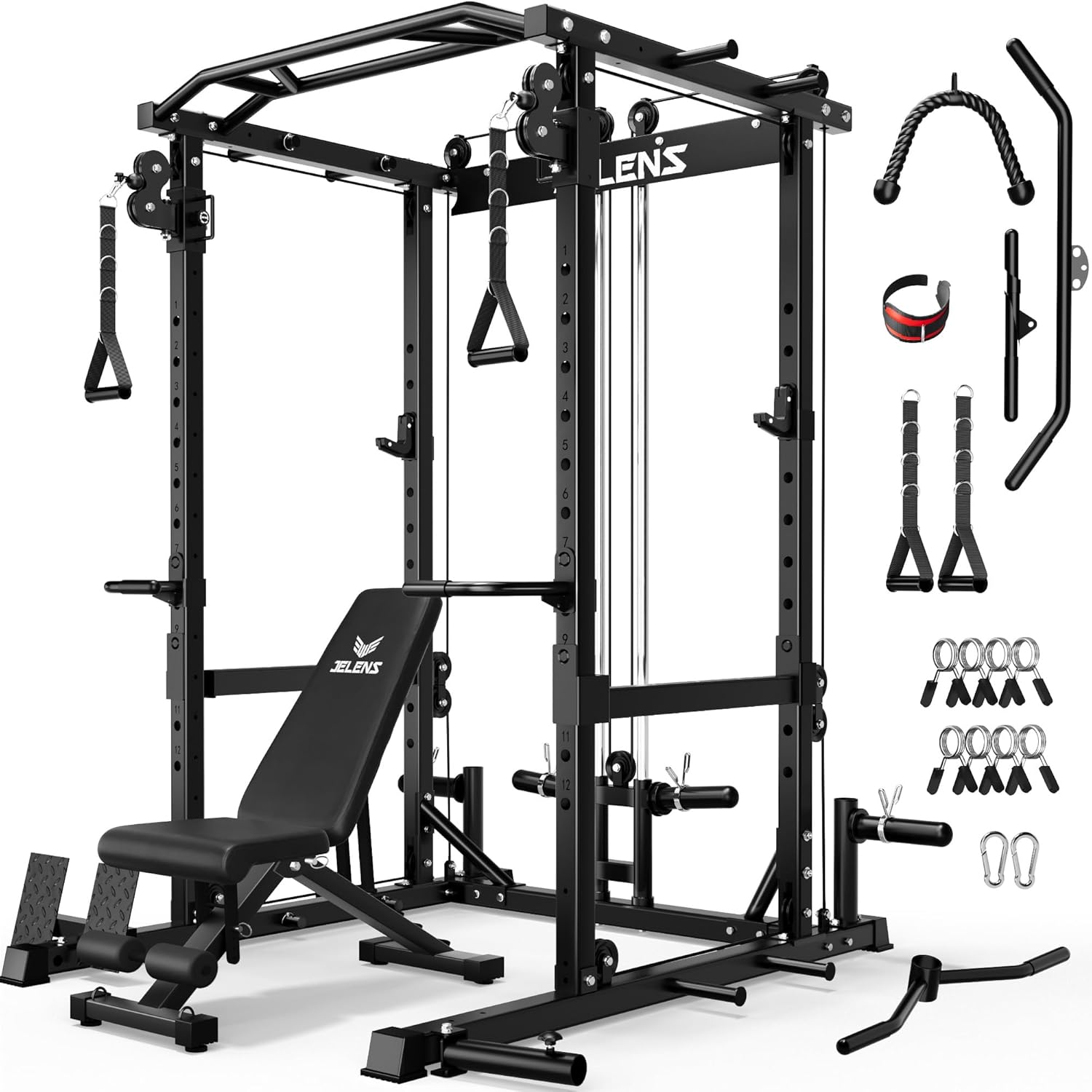 JELENS Power Cage for Home Gym, Multi-Function C12 Squat Rack with Adjustable Pulley System