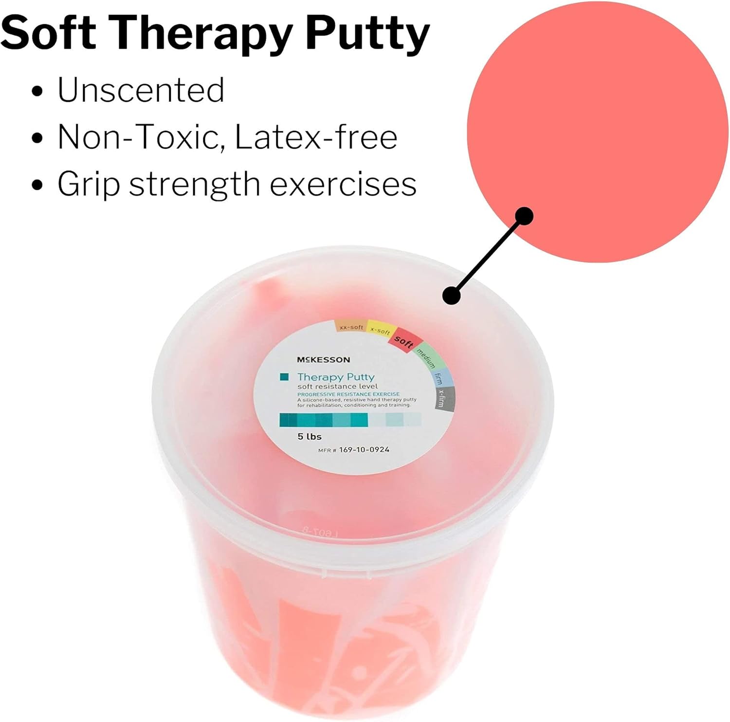 McKesson therapy putty is designed to increase flexibility, improve strength, limit stiffness, decrease stress and relieve joint pain in your fingers, hands, wrists and forearms. Stretch, squeeze, twist, or pinch McKesson therapy putty using a variety of different hand, finger and wrist exercises. McKesson therapy putty is available in convenient, easy-to-open plastic containers to use at home.