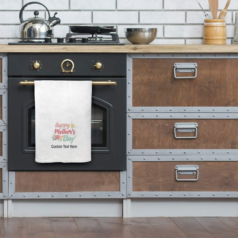 Personalized Kitchen Towels Bar Accessories & Mother's Day Decor Dish Towels Cook in style with our 27x27 inches 100% cotton Eco-friendly Happy kitchen towel. Make this hand towel your best companion when you clean or cook delicious tasty meals in your kitchen. You can use this white Mother hand towel in multiple ways such as drying dishes, wrapping bread, cleaning spills or simply take it with you in your picnic hamper! The design's text reads: happy mother's day. GREAT HOUSEWARMING GIFTS IDEA: Perfect for someone who is looking for Day white hand towels, Mom kitchen dish towels, Mama tea towel, Mommy cotton towels, Motherhood kitchen dish cloths Special kitchen towels, Love cotton dish towels, hanging kitchen towels, or any household essentials. Our designs are professionally printed on our dishcloths for kitchen with state-of-the-art equipment guaranteed to last for years. We have more than 12 years of experience in the printing industry to offer you stunning detail and rich lifelike colors. PERFECT COMPANION FOR COOKING & CLEANING! ** Made from high quality Eco-friendly 100% cotton ** Large size 27x27 inches ** Corner hanger loop for an easy hanging & display ** 4-sided hem for best durability ** Washer & dryer friendly for an easy care ** Design professionally printed ** Multiple usages: cooking, cleaning, drying, wrapping bread, picnic etc...