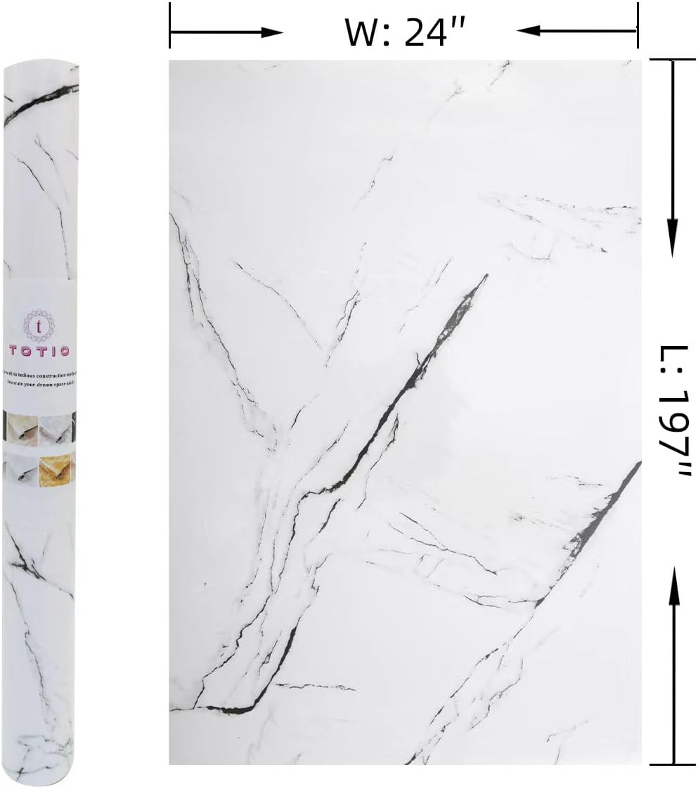 Marble pattern wallpaper both gentle and high luxury temperament, from the natural texture of the wallpaper, giving unlimited design possibilities, whether with fashionable modern style or classic retro style, can present the infinite beauty of the home.Product Details:Name: White marble self-adhesive wallpaperStructure: PVC film + adhesive + liner paperInstallation: self-adhesive, just peel and stick,no additional glue requiredSpecifications: 24 inches x 197 inches (60CM x 5M) Total: 32.3 sq ftTouch: glossy smooth surfacePattern: Faux marble patternColor: Snow white base + black line accentsThickness: about 0.23mmUse: decorate walls and floors, upgrade old furnitureSet: 1 rollinstallation steps:1. Clean the surface.2. After measuring the required quantity, cut the vinyl wallpaper to the appropriate size. It is recommended to leave a margin of 2-3 cm on each side for later adjustment.3. Remove the backing paper from one corner of the wallpaper, fix the sticky side first and smooth the wallpaper with a towel from top to bottom, from the centre to the edge.4. If there are air bubbles on the surface after pasting, you can use a needle to poke a small hole in the bubble to remove it.Note:1. Self-adhesive wallpaper should not be applied to uneven surfaces and surfaces with water, oil or dust, as this will affect the durability of the glue.2. Due to the different production batches of wallpaper, the colour may vary slightly,so please buy enough rolls of wallpaper at once to minimise colour differences.3. wallpaper rolls in the distribution process, sometimes there will be indentation wrinkles, but this does not affect the use at all, please understand.