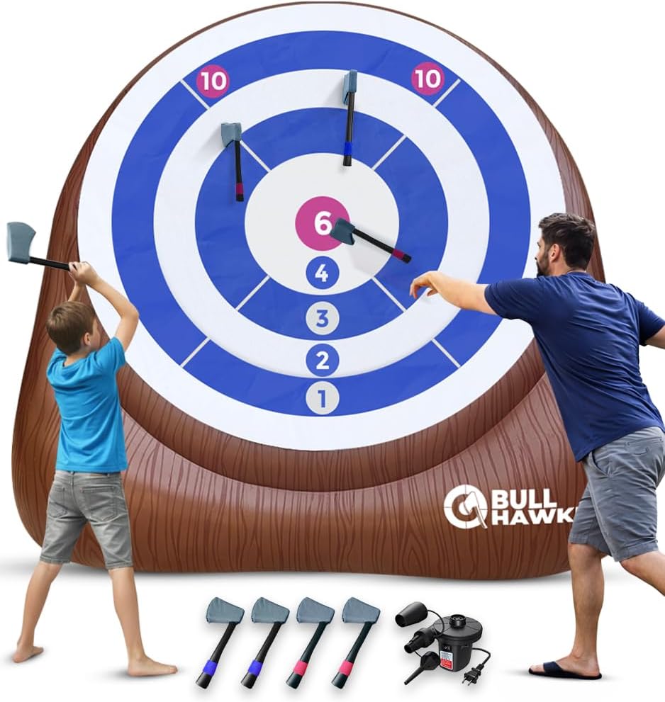 | Included Components | 1 Air Pump With Pump Attachment, 1 Dry-Erase Scorecard and Marker, 1 Inflatable Dartboard, 2 Red and 2 Blue Foam Axes, 2 Repair Patches & 4 Ground Stakes |